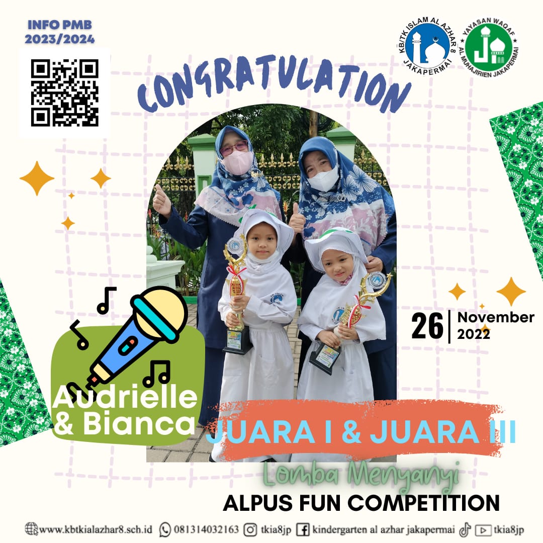 Alhamdulillah.. Ananda Audrielle dari kelas B2 dan Bianca dari kelas B3 mendapatkan gelar juara dalam ajang lomba yang diselenggarakan oleh TD-KB-TK Islam Al Azhar 1 Kebayoran Baru. Acara yang bernama AFCo ( Alpus Fun Competition) ini berlangsung selama 4 hari dari tanggal 23 November – 26 November 2022. Ananda Audrielle berhasil meraih juaran 1 dalam […]