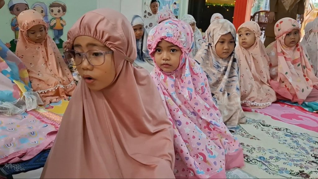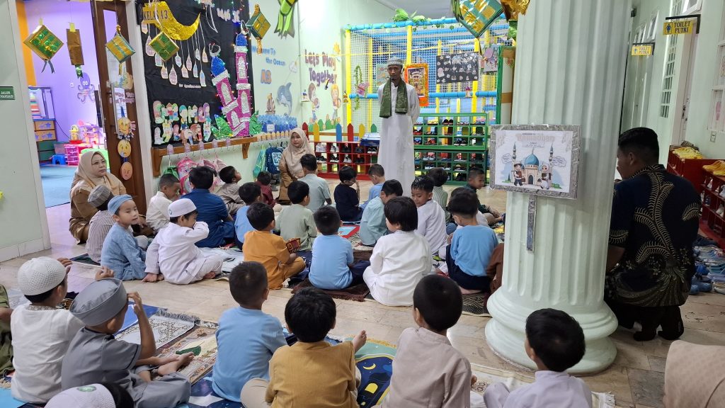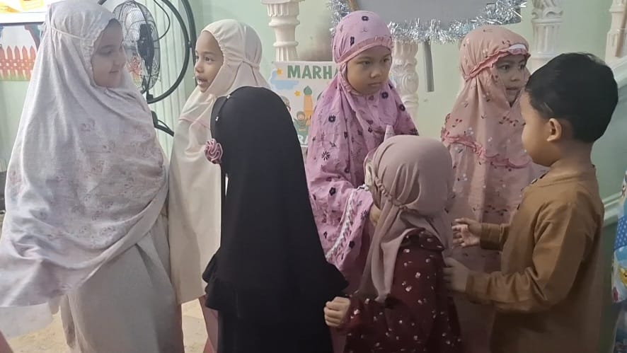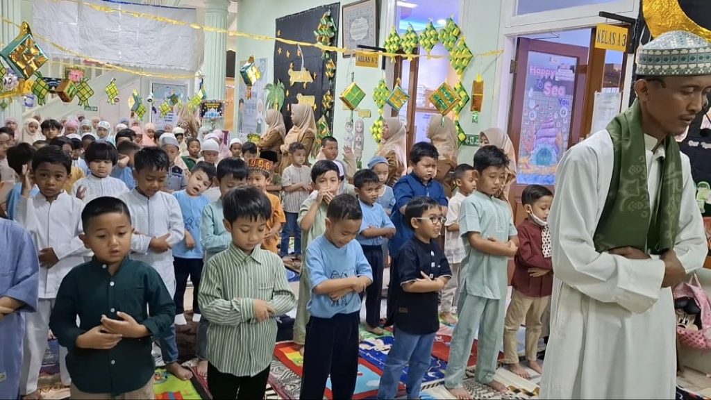 Lafazh takbir berkumandang.. hari terakhir ramadhan di sekolah anak sholeh dan sholeha. Dengan menggunakan baju muslim terbaik anak-anak setelah ikrar berkumpul menuju koridor dengan membawa mukena dan sajadah. Alhamdulillah cuaca cerah. Bapak Hidayatturrahman sebagai imam praktek sholat Idul Fitri. Seluruh anak-anak mengikuti gerakan imam melaksanakan praktek sholat Ied, mendengarkan khutbah dan bersalaman-salaman.