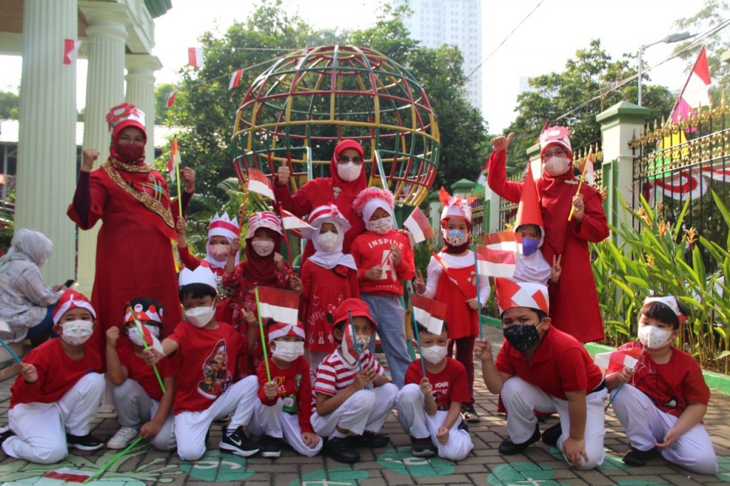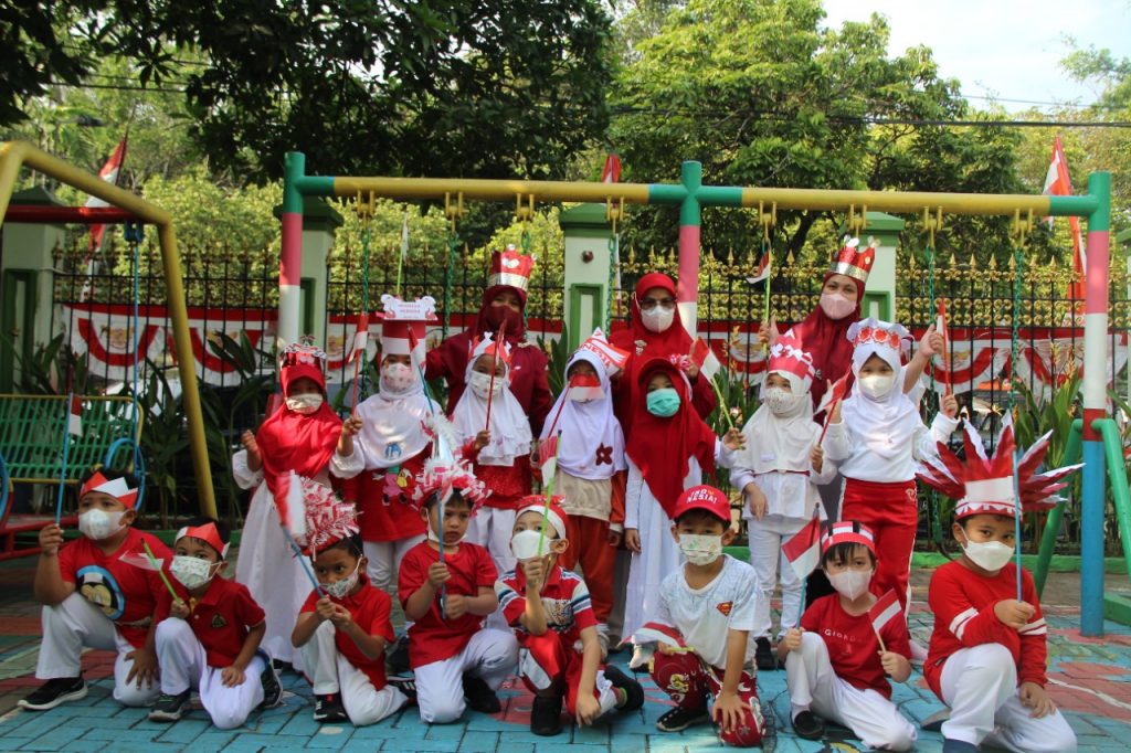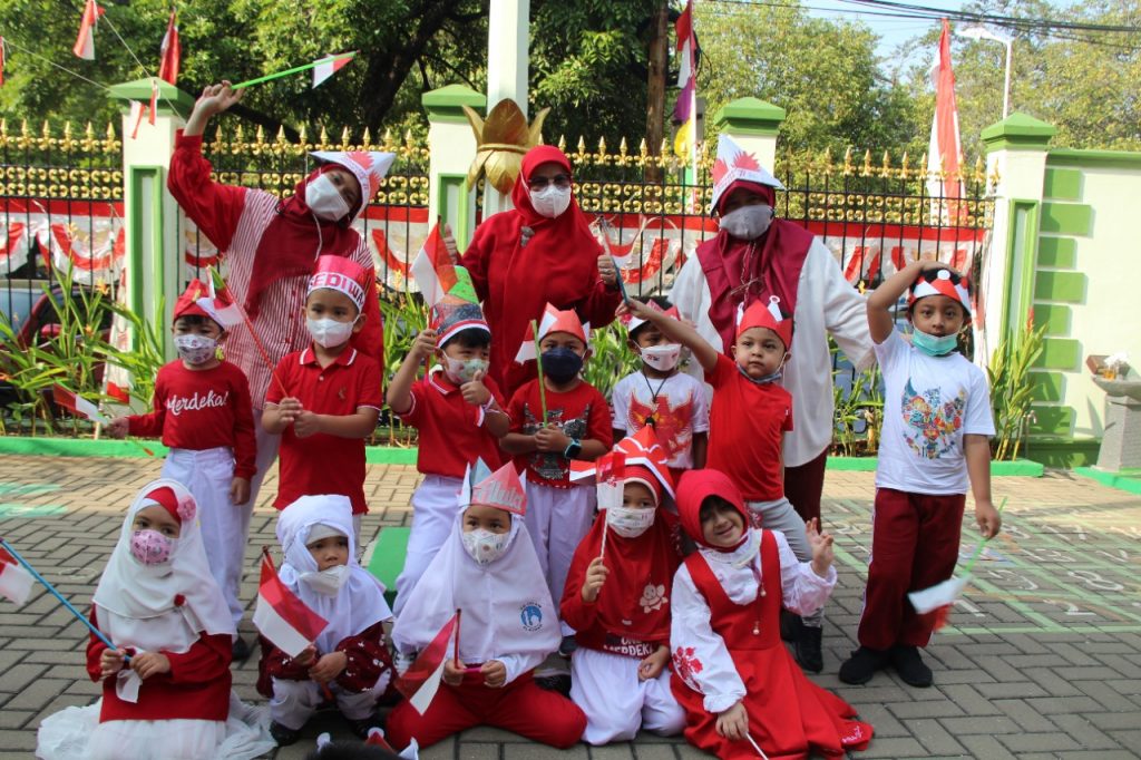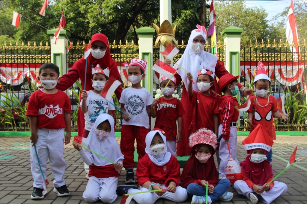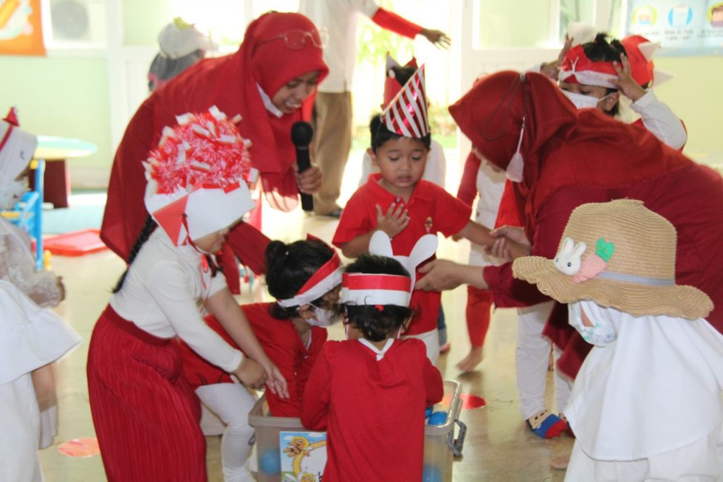 Kostum nuansa merah putih dan aneka topi kreasi buatan ayah dan bunda dan bendera melengkapi kegiatan hari ini, selain bernyanyi bersama pada hari ini anak-anak mengikuti beberapa kegiatan lomba diantaranya ada pindah bendera (TK A), memasukkan pensil ke dalam botol (TK B), makan krupuk (TK A&B), mengumpulkan bola berwarna merah ke dalam keranjang (KB) dan untuk bunda-bundanya lomba estafet sarung. Dan pada hari ini juga anak-anak membawa bekal nuansa merah putih.