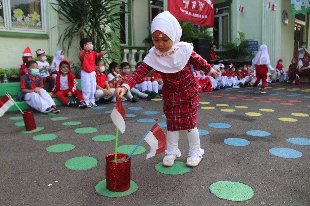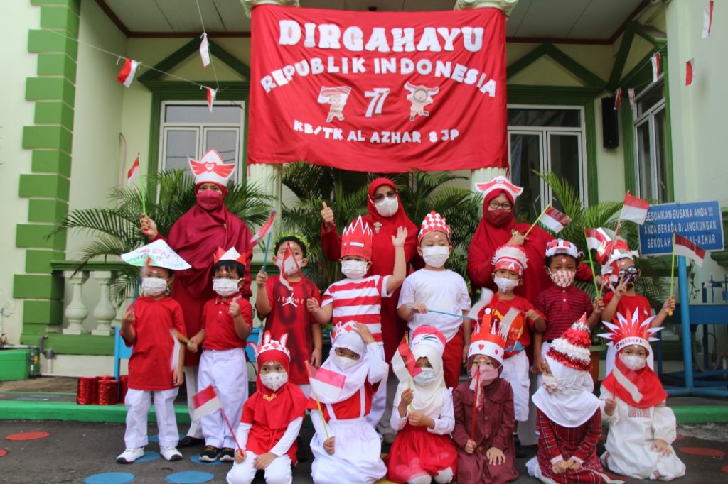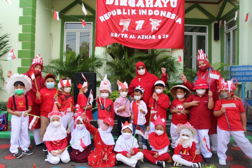 Tujuh belas Agustus tahun empat lima itulah hari kemerdekaan kita… Lirik lagu yang dinyanyikan oleh murid-murid KB-TK Islam Al Azhar 8 Jakapermai pada hari Senin 15 Agustus 2022. Diiringi oleh suara keyboard yang dimainkan oleh Pa Ali beberapa lagu wajib nasional dinyanyikan secara bersama-sama oleh seluruh murid dan ibu guru.