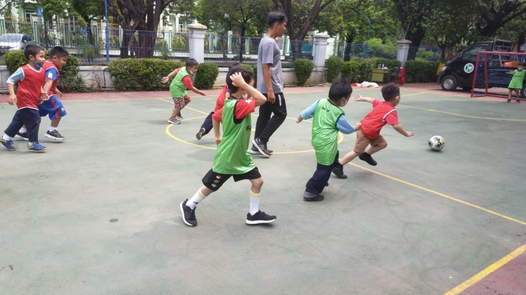 Bermain dengan si kulit bindar memang tidak akan pernah membuat anak-anak bosanwalaupun menguras tenaga seakan-akan kulit bundar ini mempunyai magnet di hati anak-anak. Rabu pagi yang cerah setelah ikrar pagi nak-anak ganteng bergegas menuju lapangan futsal tentu saja tetap sesuai jadwal. Bapak Budi sejak pagi hari telah menyiapkan lapangan futsal sehingga telah siap digunakan setelah anak ikrar. Kak Farisi dengan sabar melatih anak-anak dari mulai pemanasan sampai ke pertandingan yang mengasah kemampuan anak berlari dan mengolah si kulit bundar. Bu Mae dan Ema dengan penuh kasih sanyang selalu mendampingi anak-nak bermain bola. dan tentu saja ini menambah sengat nak-anak bermain bola. Semangat berlatih anak soleh semoga yang kalian cita-citakan dapat tercapai, Aamiin..